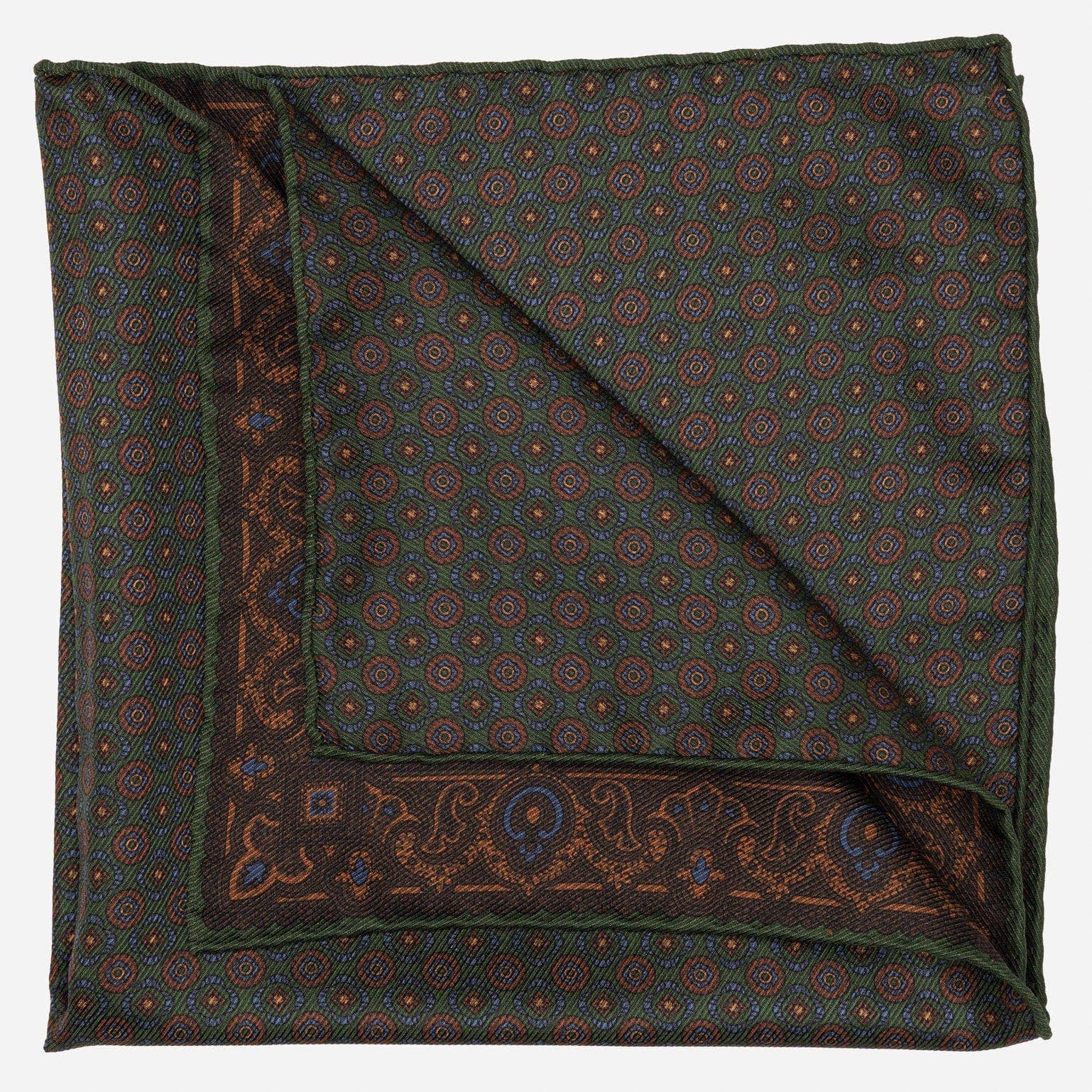 Lario - Double Sided Silk Pocket Square - Green & Brown
